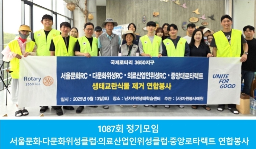 2025년 9월 13일 토요일 아침, 서울문화로타리클럽은 제1087회 정기모임을 연합 봉사활동으로 진행했다. 이번 행사는 서울문화-다문화위성클럽이 주관하고, 서울문화로타리클럽과 중앙로타랙트클럽, 서울문화-의료산업인위성클럽이 함께 참여하여 더욱 뜻깊은 자리였다.