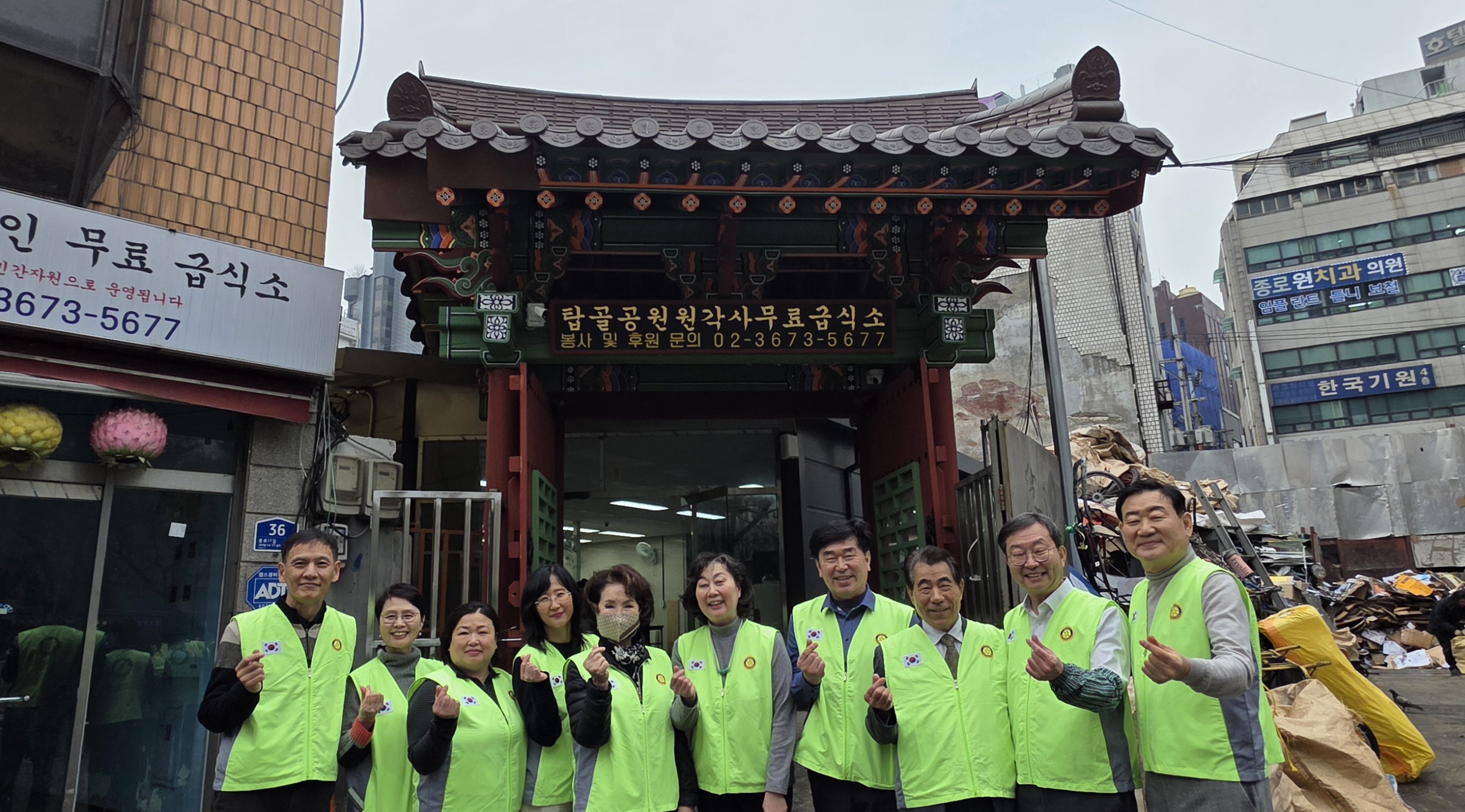 2.4(수), 입춘이지만 아직 추운 날씨 속에서도 국제로타리의 창립 121주년 기념하는 클럽봉사주회로 [탑골공원 원각사 노인무료급식소 배식봉사]를 개최하였습니다.