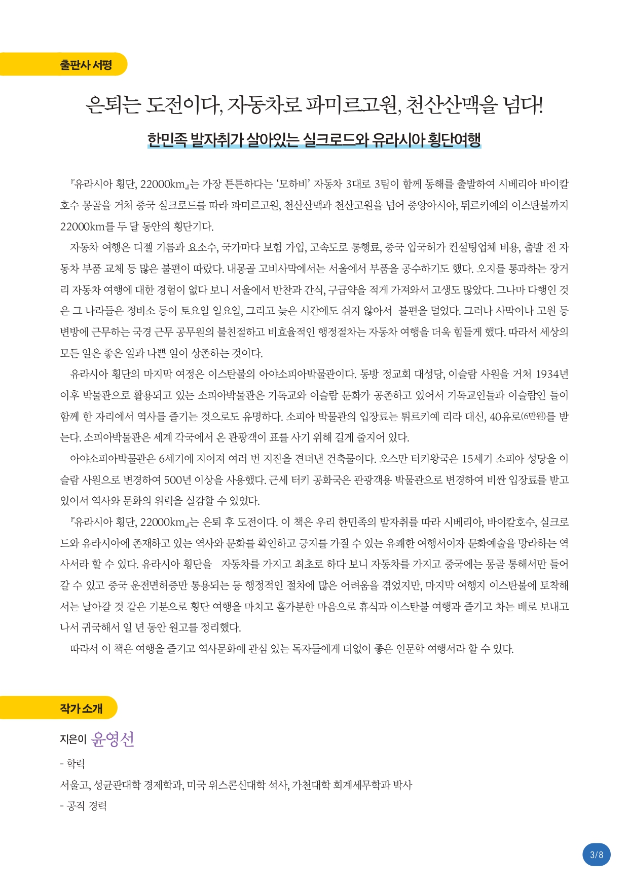 [서울회현RC] 윤영선회원 책 출간[유라시아횡단,22000KM]