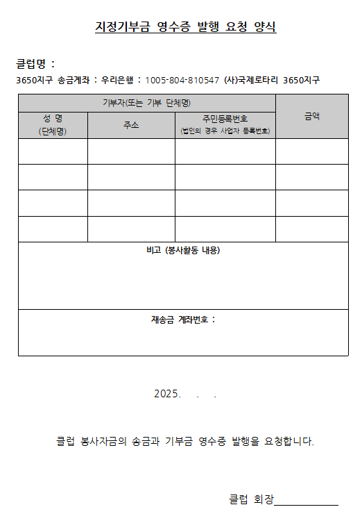 [3650지구] 지정기부금 영수증 양식