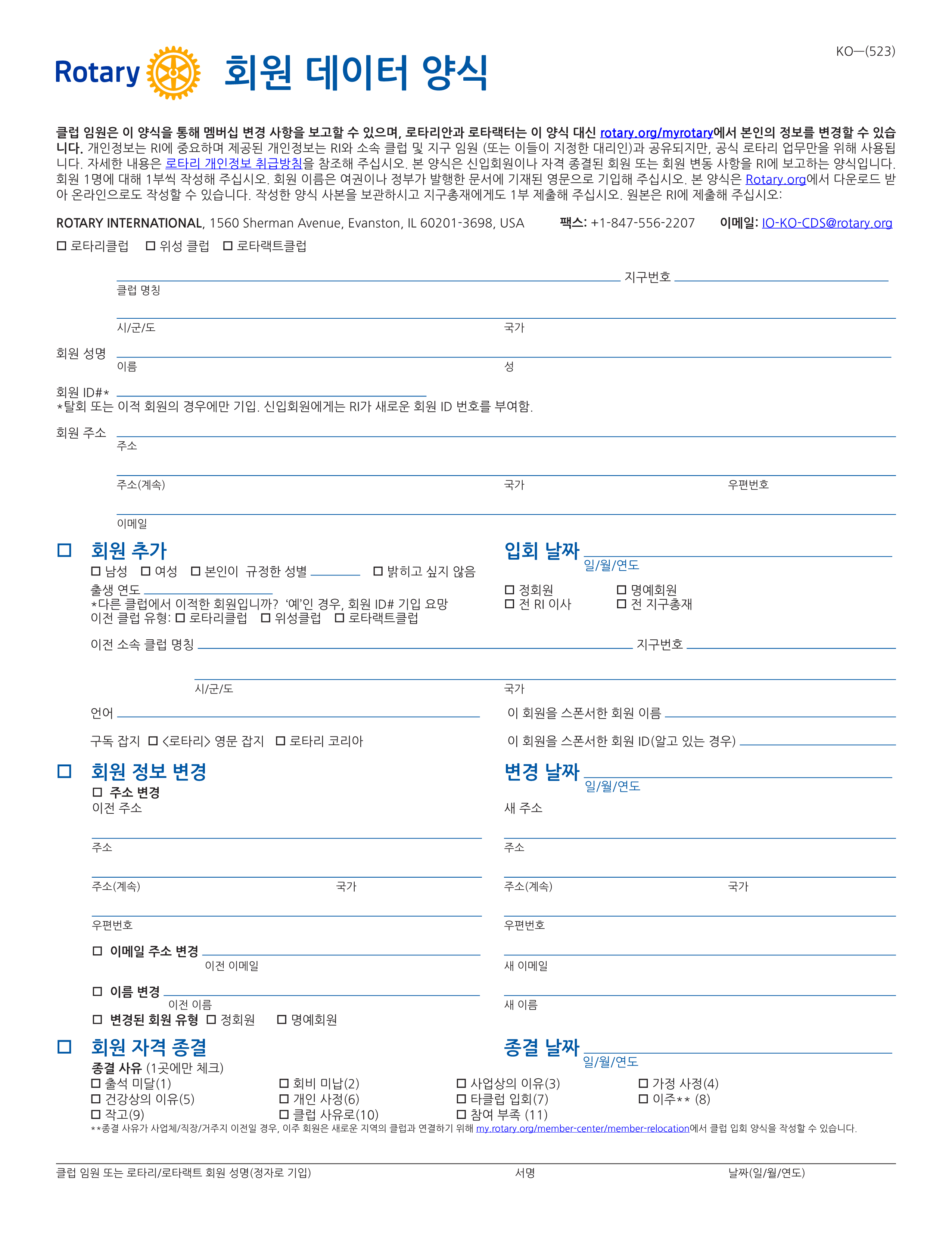 ※ 이메일 : data@rotary.org, io-ko-cds@rotary.org (두 곳 모두 발송)