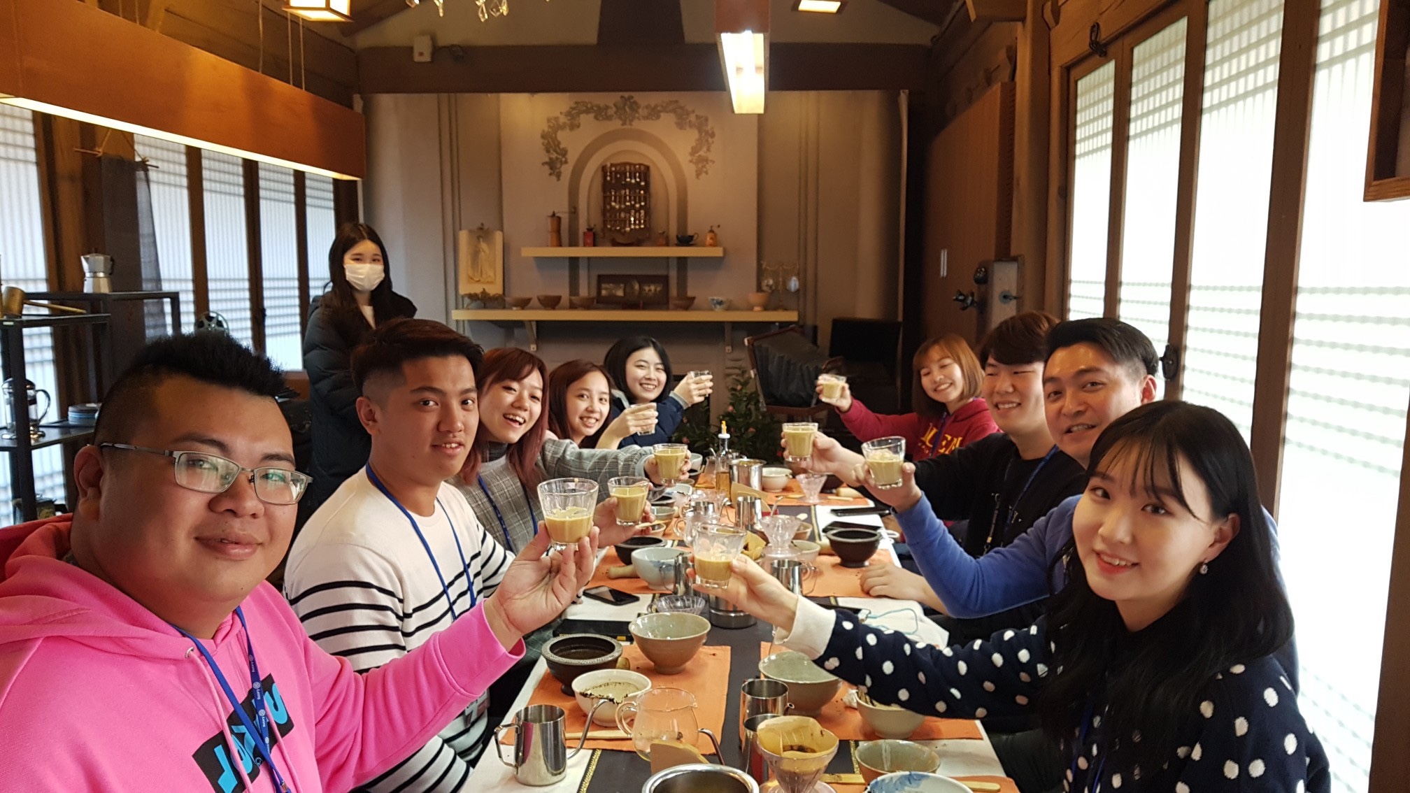 2월 7일 오전 11시경 대만 로타랙터들과 공항에서 첫 만남을 가진 후에 <남산 목멱산방> 식당에서 개회식을 진행하였습니다. 3650지구 로타랙트 지구임원, 한국 로타랙터, 대만 로타랙터들의 간단한 소개 후 비빔밥을 먹으며 이야기를 나누는 시간을 가졌습니다. 남산골 한옥마을에서 한국 최초의 커피 <양탕국>을 만들어보는 체험이 이루어졌고 명동에서 짧은 쇼핑을 한 후에 <충무로 소담집>이라는 삼겹살 식당으로 이동했습니다. 한국 로타랙터들이 삼겹살을 구워주며 대만 로타랙터들에게 소주마시는 방법, 주도(酒道), 술게임 등 한국의 술 문화를 재미있게 알려주며 얘기하는 행복한 시간을 보냈습니다.