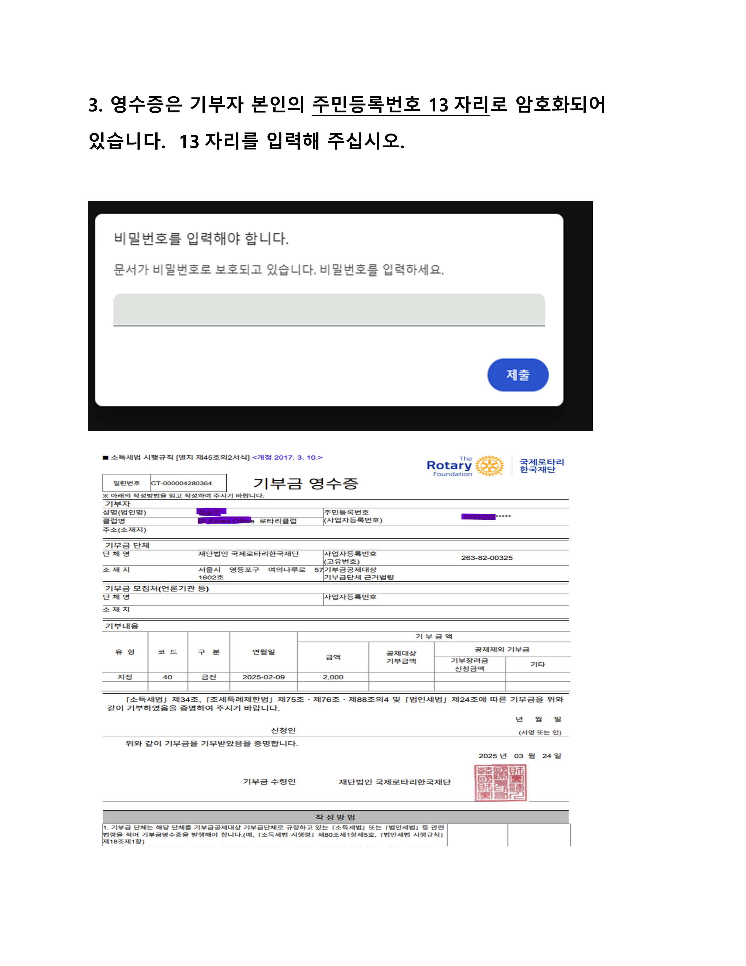 ※ 기부금 영수증 발급 및 소득공제를 원하실 경우,