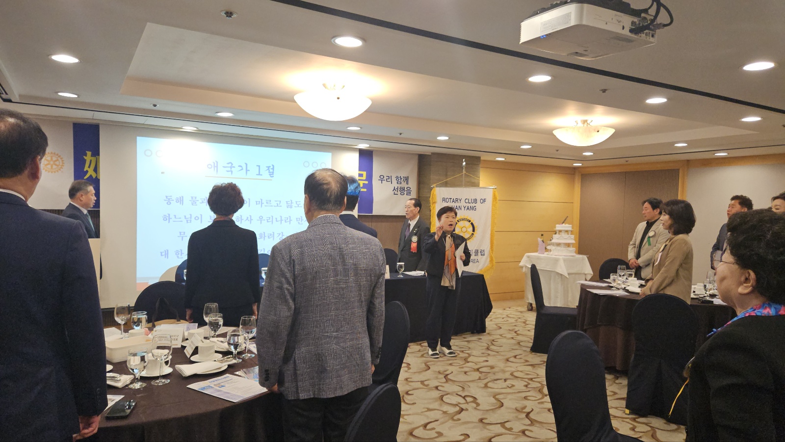이날 주회에는 여산 김종문 총재, 이상우 사무총장, 곽삼근 2지역대표를 비롯해 한양로타리클럽 회원 30여 명이 참석하여 자리를 빛냈습니다.