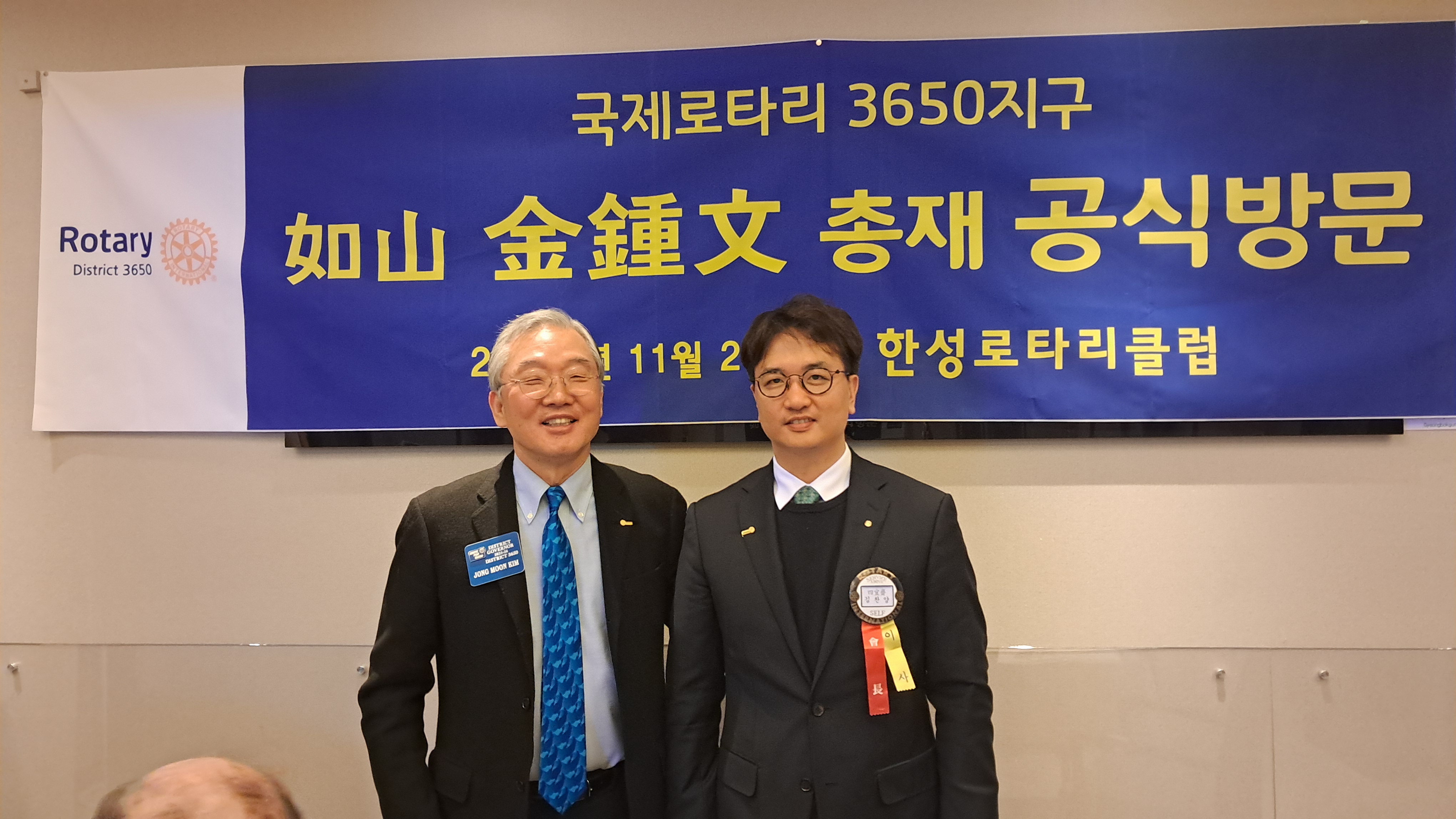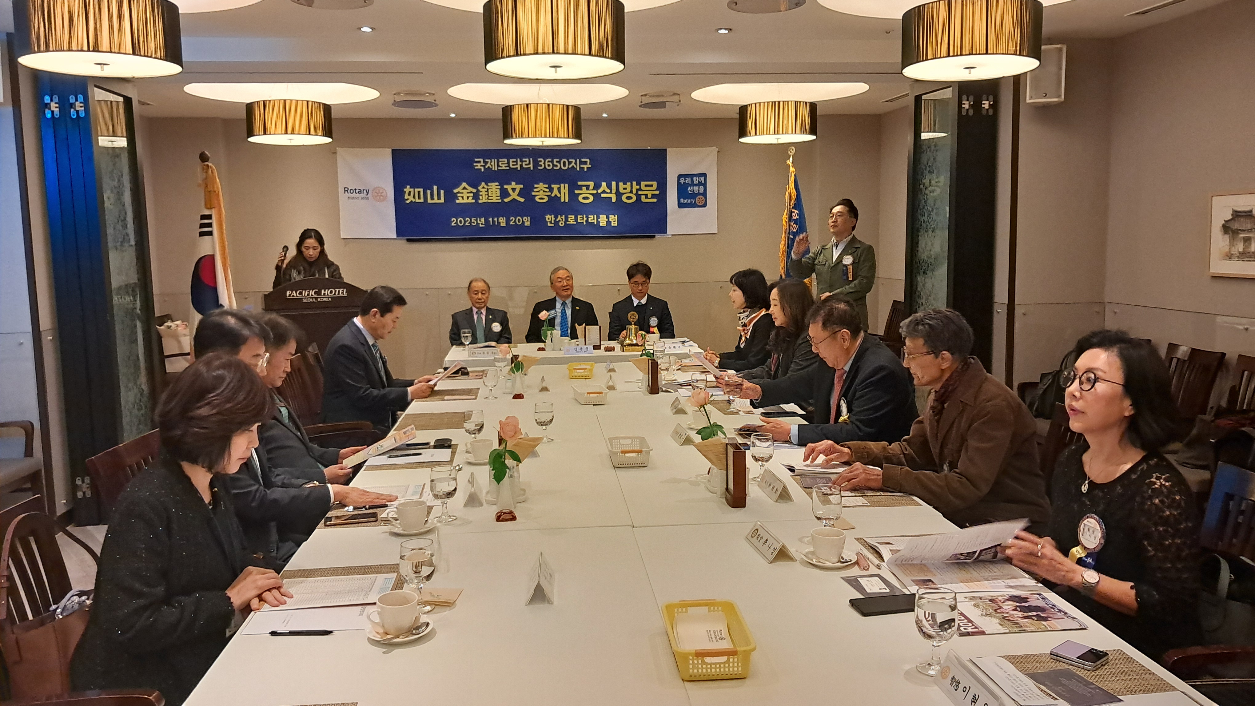 한성로타리클럽(회장 김찬양)은 지난 11월 20일(목) 12시 30분 퍼시픽호텔에서 국제로타리 3650지구 김종문 총재의 공식방문주회를 개최했습니다. 본 행사에 앞서 김윤철 5지역대표, 이상우 사무총장, 권보은 사무부총장께서 동행한 가운데 클럽 임원들과의 클럽협의회가 열려 클럽의 현황과 향후 발전 방향에 대해 논의가 이루어졌습니다.