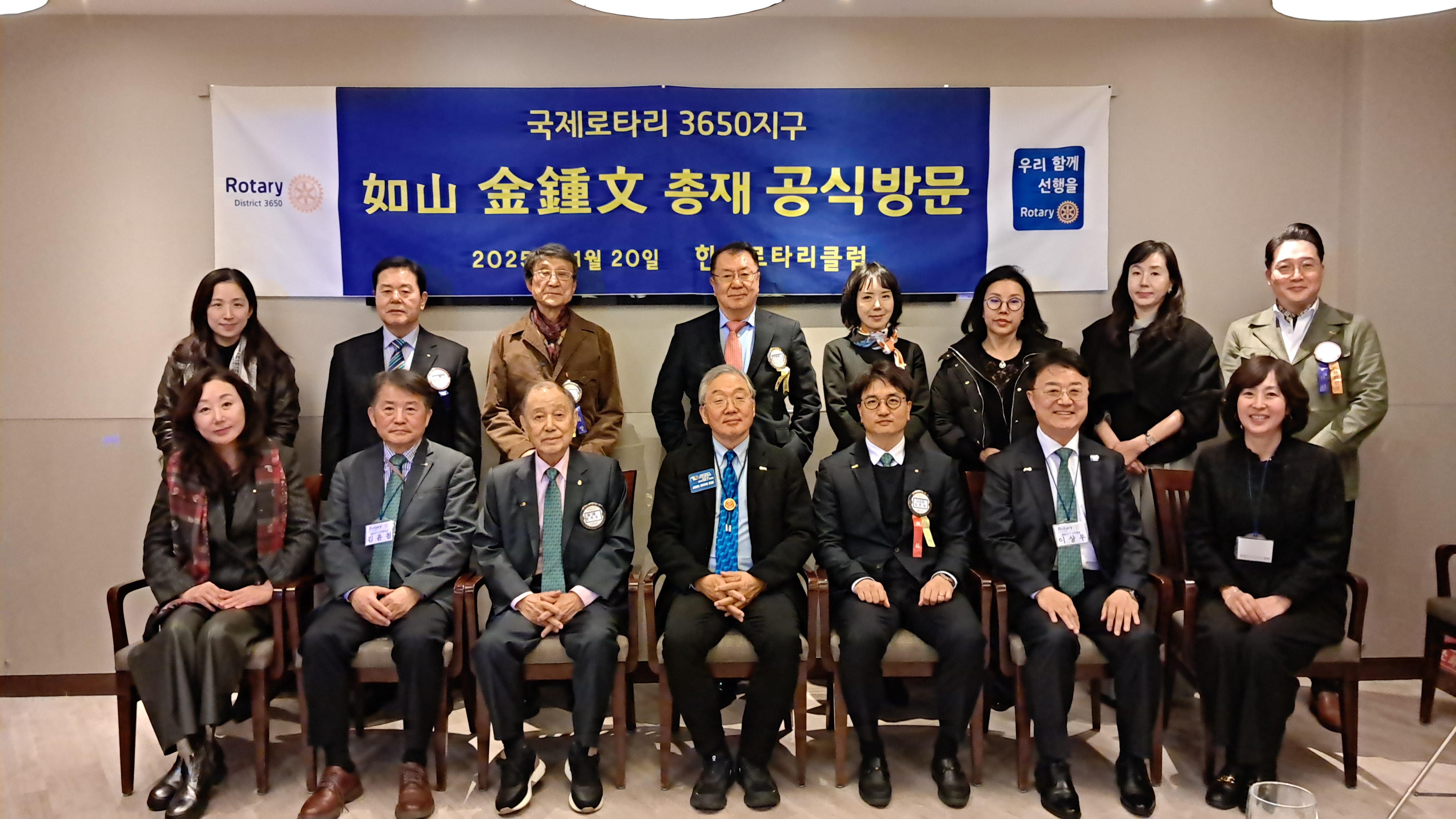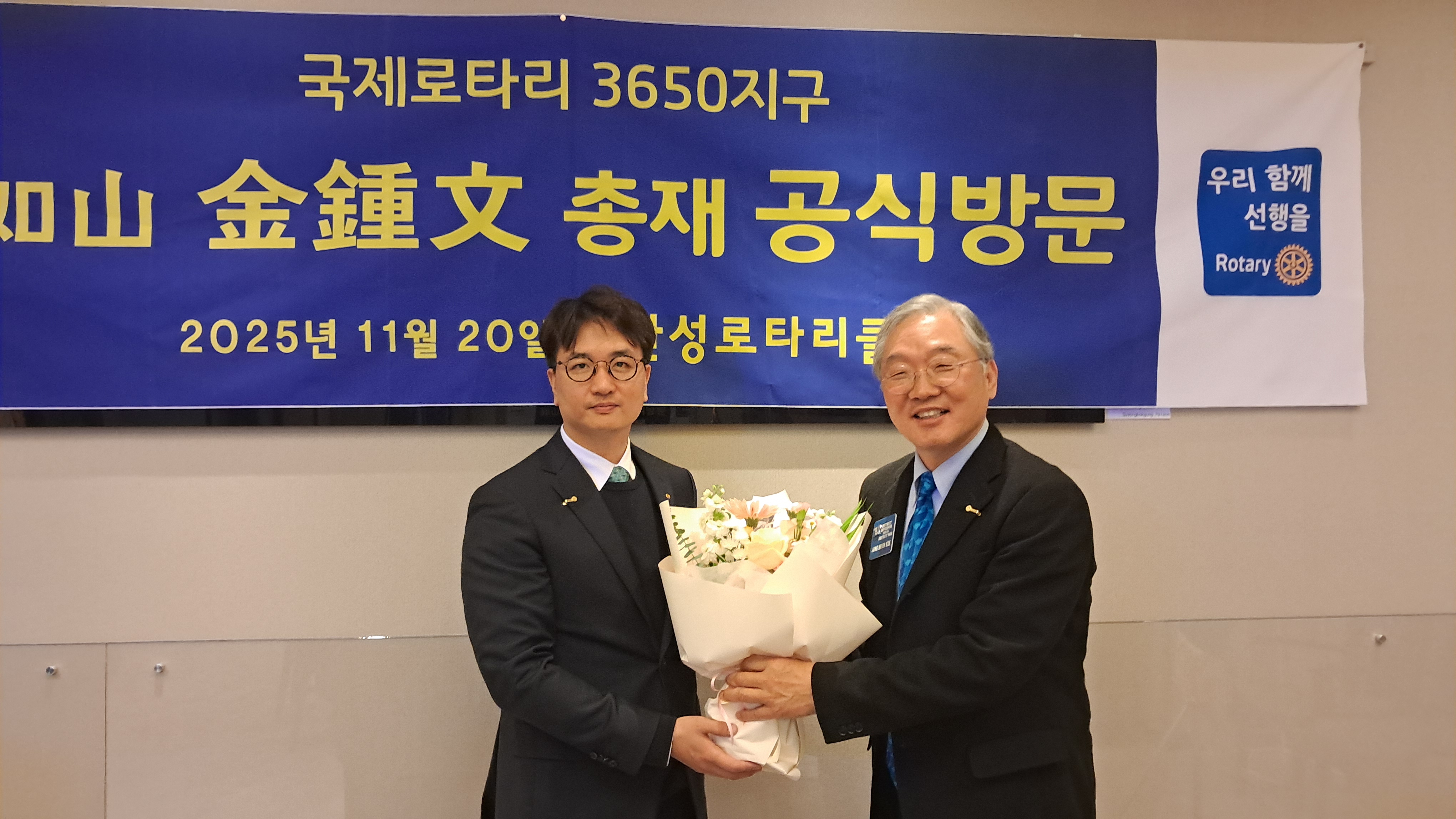김종문 총재께서는 연설을 통해 로타리의 회원 증강 전략과 지구의 비전을 소개하며 한국 로타리는 1927년 창립 이후 곧 100주년을 맞는 명문 조직이며, 그 성장을 이끌어온 핵심은 우수한 회원들이라고 강조하셨고, 또한 3650지구는 ‘정중한 초대’를 주제로 한 8면 엽서형 초대장을 제작해 인재 영입에 활용하고 있으며, 그 결과 올해 7월 1일 2,331명이던 회원 수가 최근 2,409명으로 증가했다고 밝혔습니다. 총재께서는 단순한 증가보다 중요한 것은 초대를 통해 입회한 회원들의 품격과 지속성이라고 설명하셨습니다.